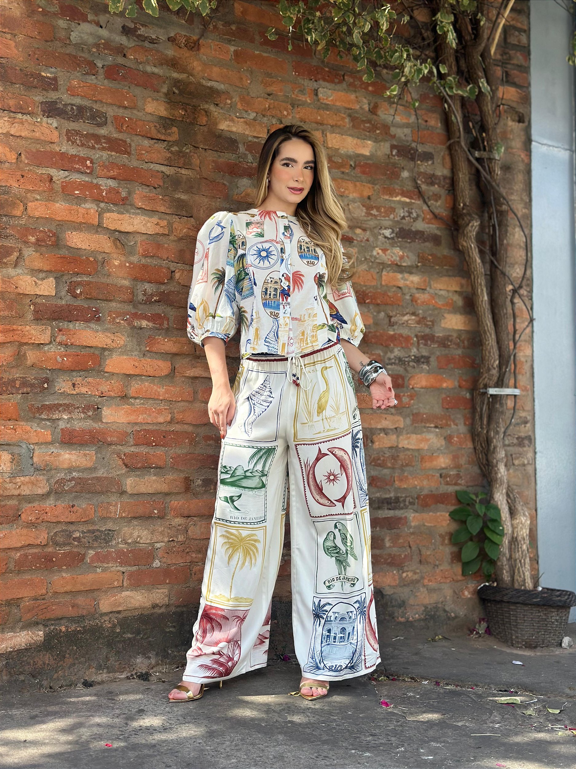 BLUSA BOTÃO TROPICAL VINTAGE